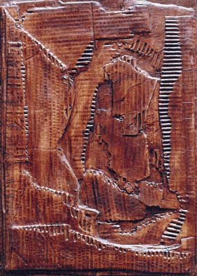 Carton marouflé sur bois, brou de noix